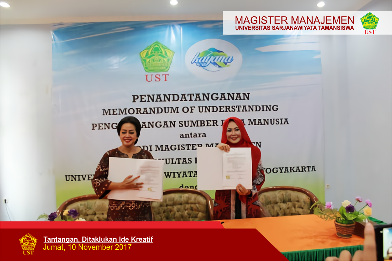 MM UST - Jum'at, 27 Oktober 2017, Magister Manajemen FE UST dan PDAM Kabupaten bantul, sepakat jalin kerjasama di bidang pengembangan SDM. Penandatanganan kesepakatan tersebut, merupakan bentuk formal kerja sama antara MM FE UST dengan PDAM Bantul yang sebenarnya sudah berlangsung dan sedang berjalan.